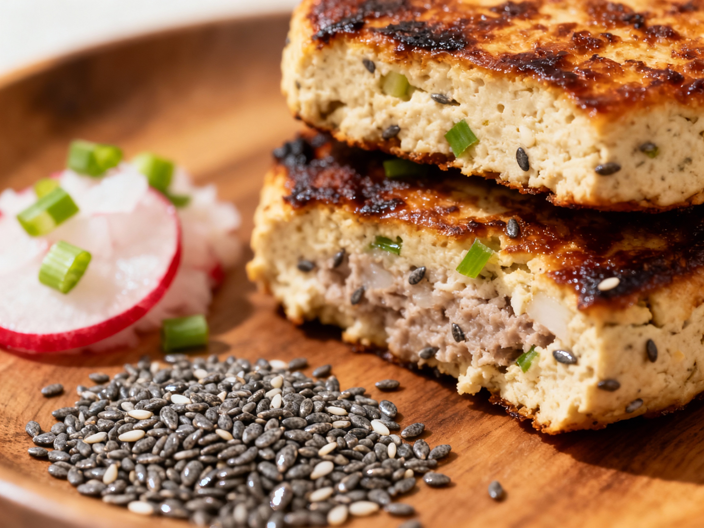 豆腐ハンバーグはもともとヘルシーですが、チアシードを加えることでさらに栄養価がアップし、食べごたえも増します。