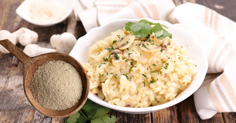 粉チーズや生クリームを加えると、より本格的なリゾットの味わいになります。