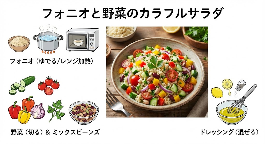 レシピ① フォニオと野菜のカラフルサラダ