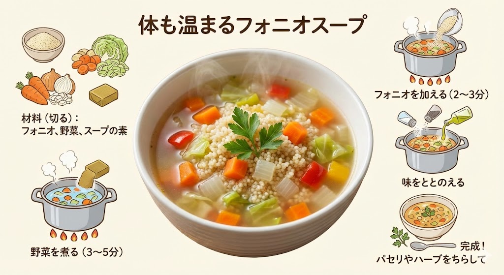レシピ③ 体も温まるフォニオスープ