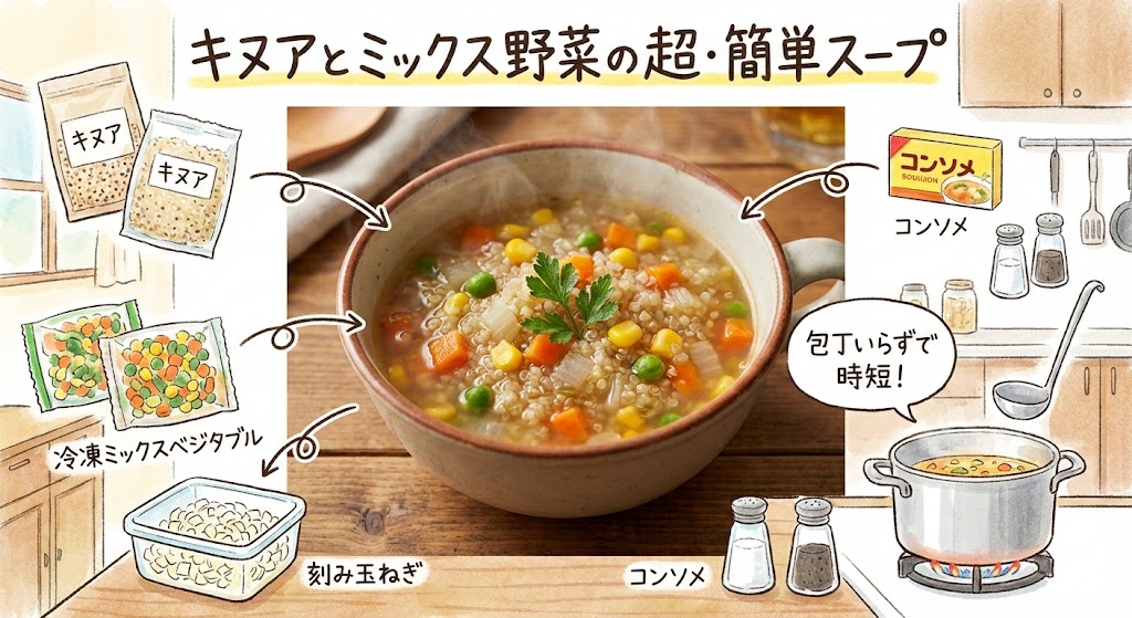 忙しい毎日でも、健康とおいしさはあきらめたくない——そんな人にぴったりなのが「キヌア入りスープ」。